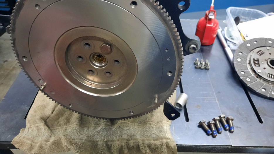 Posmarowałem śruby koła zamachowego klejem do gwintów.