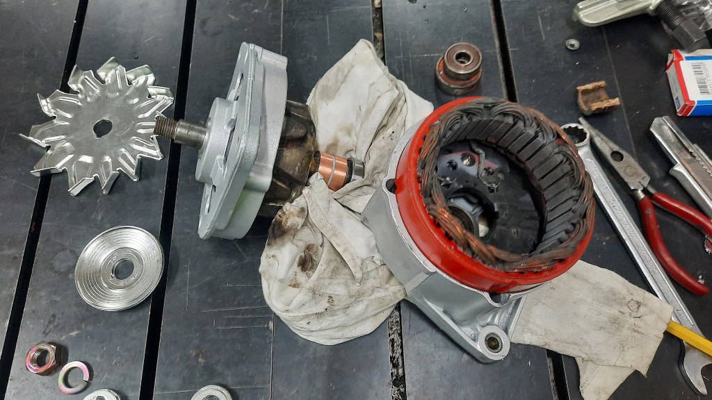 Następnym punktem mojego programu naprawczego jest alternator. Jest zapyziały, łożyska szumią... Trzeba go poprawić.