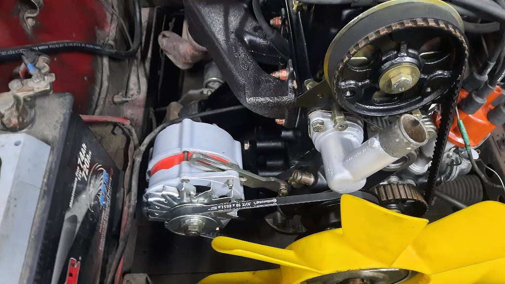Potem mogłem już przykręcić alternator do mocowania na silniku. Od razu założyłem też nowy pasek klinowy.