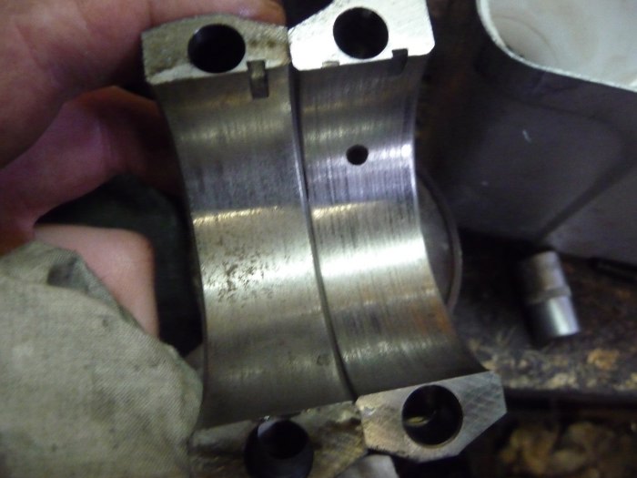 Przy okazji znalazłem coś co mnie zawsze wkurza/bawi. Uwielbiam składanie silników na taką ilość silikonu, żeby potem znajdować go wszędzie. Tu widać strzęp w kanale olejowym doprowadzającym olej do panewki głównej wału korbowego (a co za tym idzie i do jednej korbowej). Ciekawe jak długo to mogło jeździć?