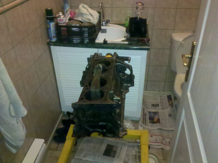 Korzystając z ładnej pogody (-10oC na dworzu, ok +2oC w garażu) zabrałem się za przygotowania do oddania silnika do szlifierni.