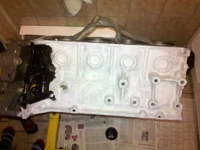 Po powrocie ze szlifierni pierwszą rzeczą jest umycie silnika. Masa brudu pozostaje po ichnim myciu i po obróbce.