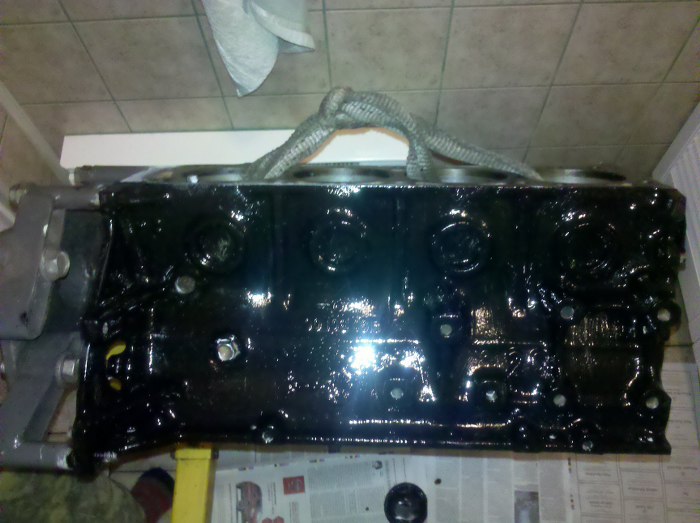 No i blok dokładnie umyty i gotowy do składania. Teraz trzeba go posmarować olejem, żeby nie zardzewiał. Niestety olej łapie kurz, więc przed włożeniem poszczególnych części jeszcze raz czyszczę dane fragmenty bloku i smaruję od nowa czystym olejem.