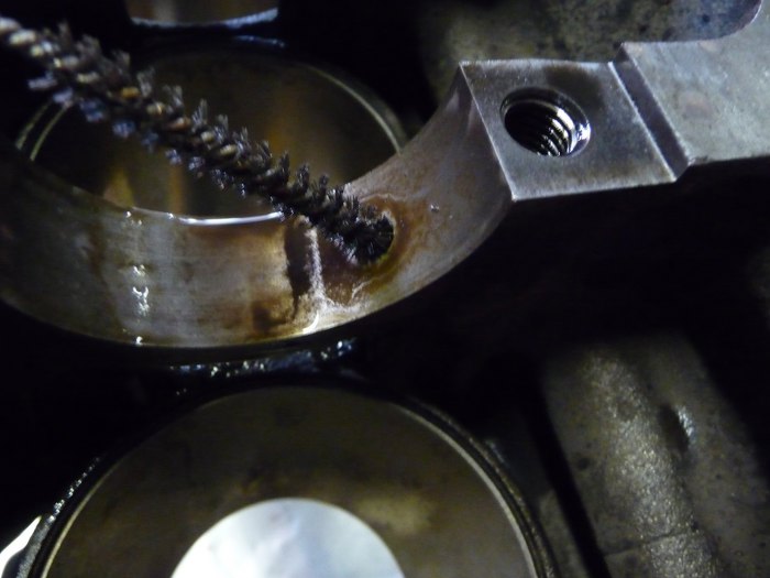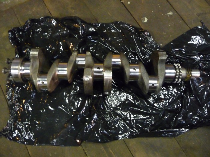 Wał był zmierzony i wypolerowany, nie był szlifowany. Po dobraniu korb i frezowaniu tłoków był wyważony. Teraz umyłem go łącznie z jego kanałami olejowymi.