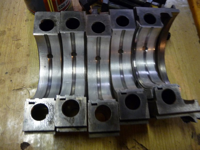 Stopki wału umyte, panewki włożone, wszystko czeka na skręcenie.