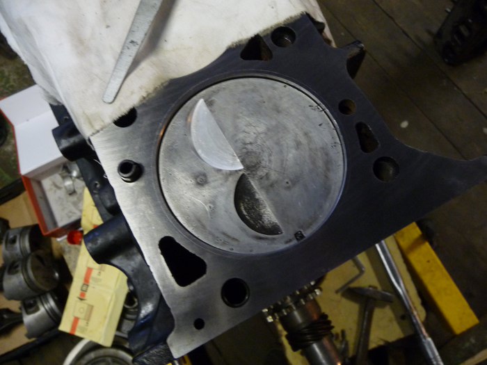 Na tłoku widać jak został podebrany materiał w miejscu fabrycznego uskoku pod zawór.