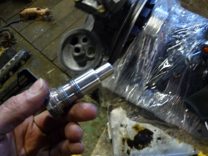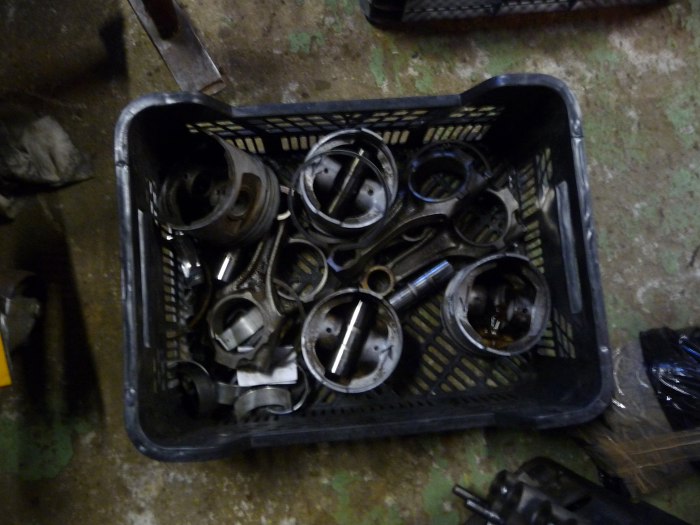 Zostały do wywalenia stare tłoki z tymi dziwnymi podcięciami i korby. W szlifierni wybrali 4 lepsze sztuki, ale też najbliższe siebie wagowo, żeby ważenie było mniej pracochłonne.