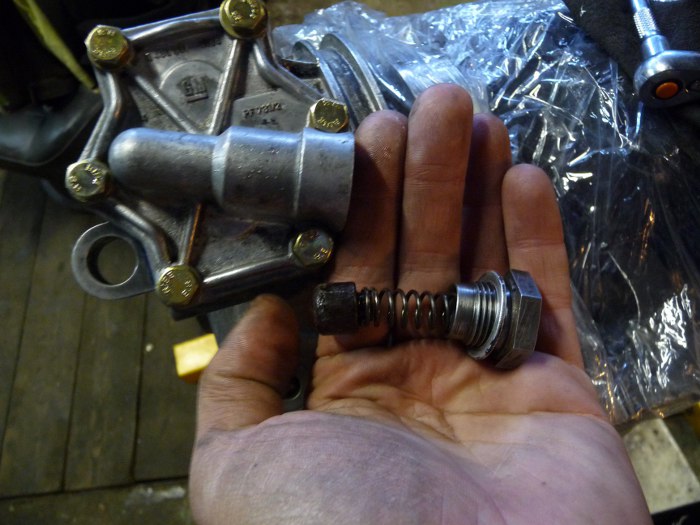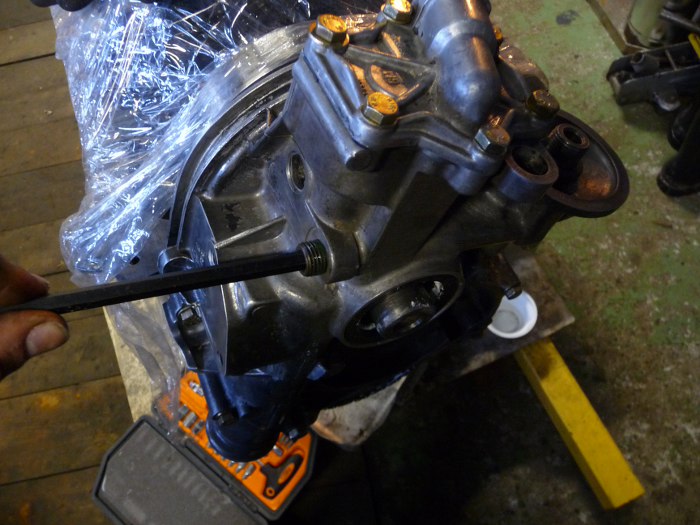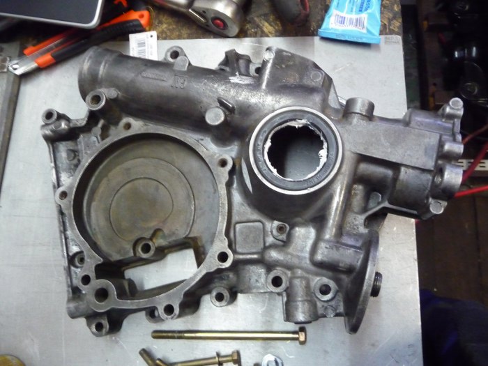 Potem nałożyłem najmniej jak mogłem silikonu na płaszczyznę pokrywy pompy oleju. Chociaż jak tak na to patrzę, to nie wykluczam jeszcze odkręcenia pokrywy, wywalenia tego silikonu, i sprawdzenia czy nie będzie cieknąć tak na sucho. Starałem się, żeby ten silikon nie dostał się do wnętrza pompy, ale jakoś mi to nie wygląda za dobrze.