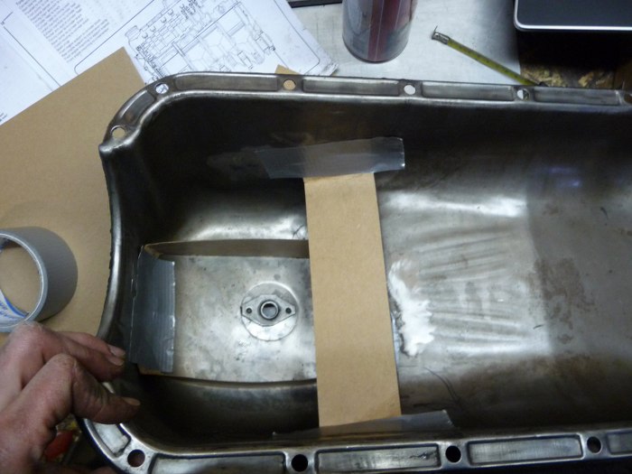 Pokombinowałem również nad zaprojektowaniem przegród do miski olejowej. Nie jestem jeszcze pewien co do tego elementu poprzecznego, ale podłużne grodzie moim zdaniem uniemożliwią zbytnie uciekanie oleju na boki podczas zakrętów. Całość tu widoczna nie zawadza o nic, więc to też jest plus :)