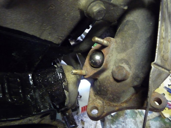 Potem w dziurę w kolektorze wydechowym wkładam kulkę z przegubu od granady.