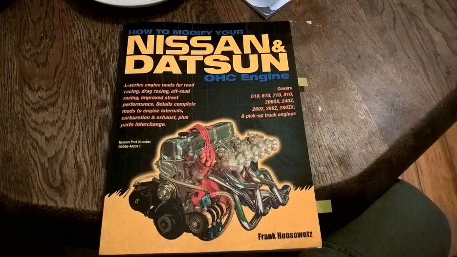 No dobra. Czemu ja tu w ogóle mam robić silnik, skoro wszystko jest tak ładnie zrobione, łącznie z silnikiem? Otóż blok, który obecnie jest w Datsunie, jest pęknięty. A skoro i tak silnik trzeba było rozłożyć, to Marcin postanowił do tego podejść kompleksowo i od razu polecieć nieco grubiej. Na podstawie tej ciekawej książki poniżej postanowił zbudować silnik 3.0l.