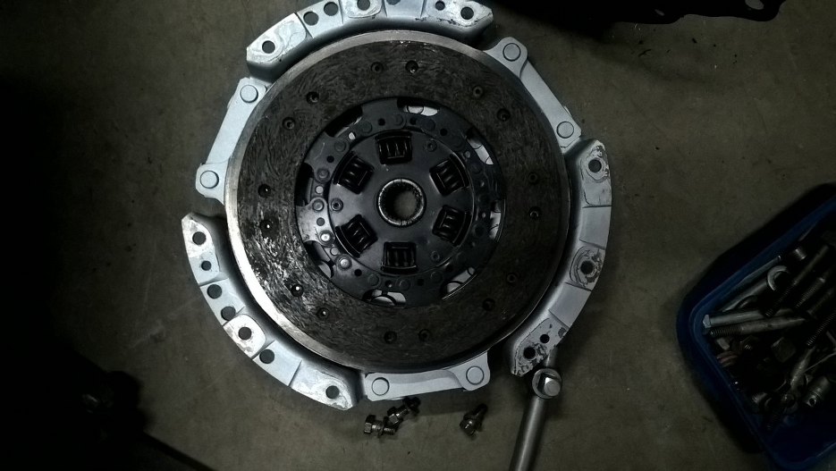 Przed przykręceniem do stojaka powstrzymuje mnie koło zamachowe ze sprzęgłem. Zaraz to odkręcę. Jeśli mogę zauważyć, to sprzęgło wygląda na nowe.