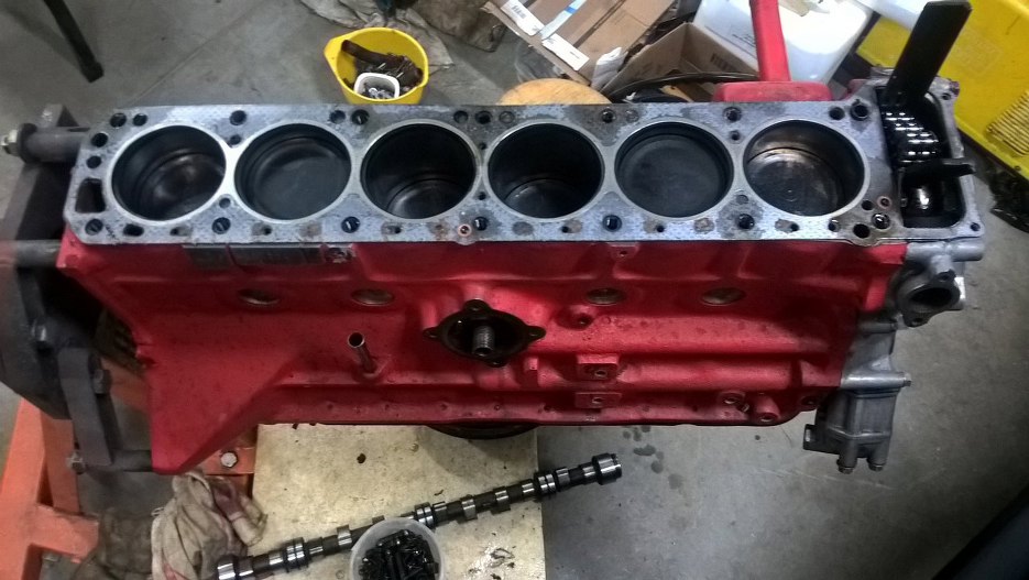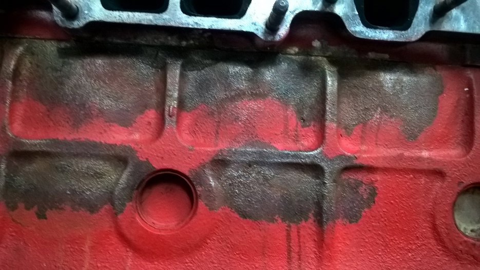 Wykręciłem też wszystkie szpilki mocujące kolektory i korek spustu płynu chłodniczego (robiąc rdzawą kałużę na podłodze).