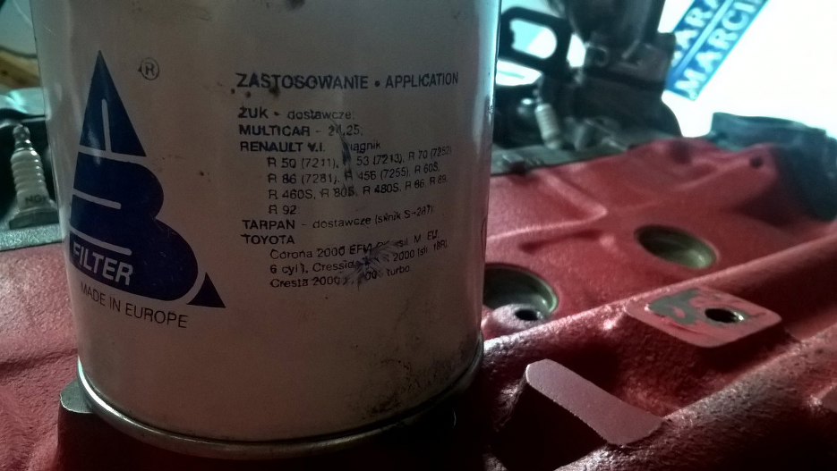 Bardzo spodobał mi się filtr oleju, a raczej do czego pasuje. Żuk, Multicar, Tarpan, ciągniki Renault...