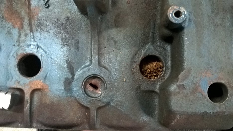 Po wybiciu broków dziubałem w środku śrubokrętem, żeby wyskrobać luźną rdzę, a następnie kręciłem blokiem na stojaku, żeby to wysypać. Skończyło się zamiataniem podłogi.