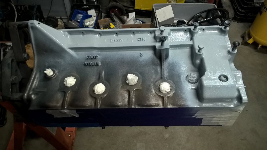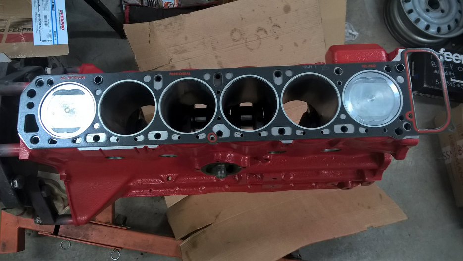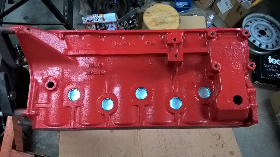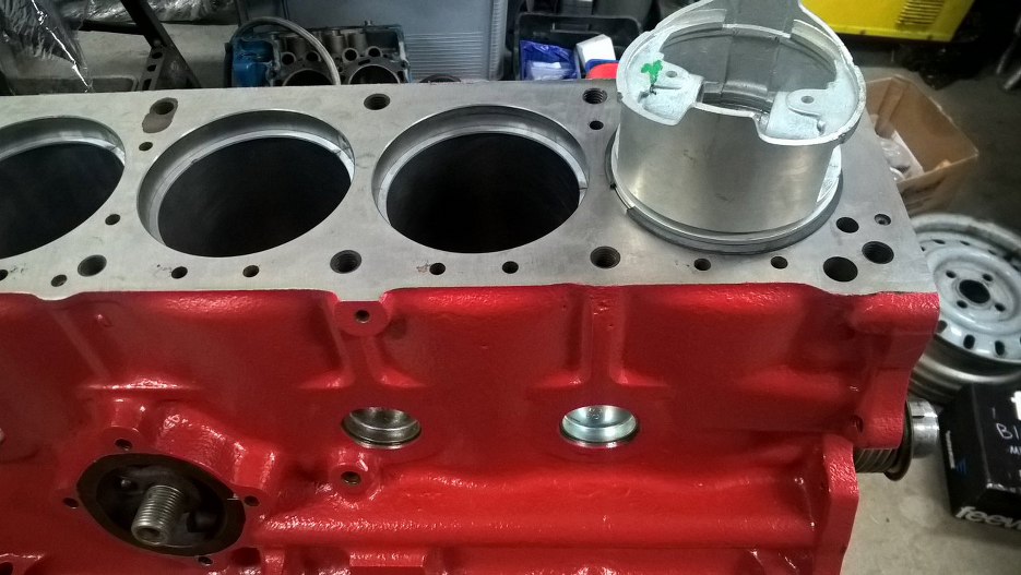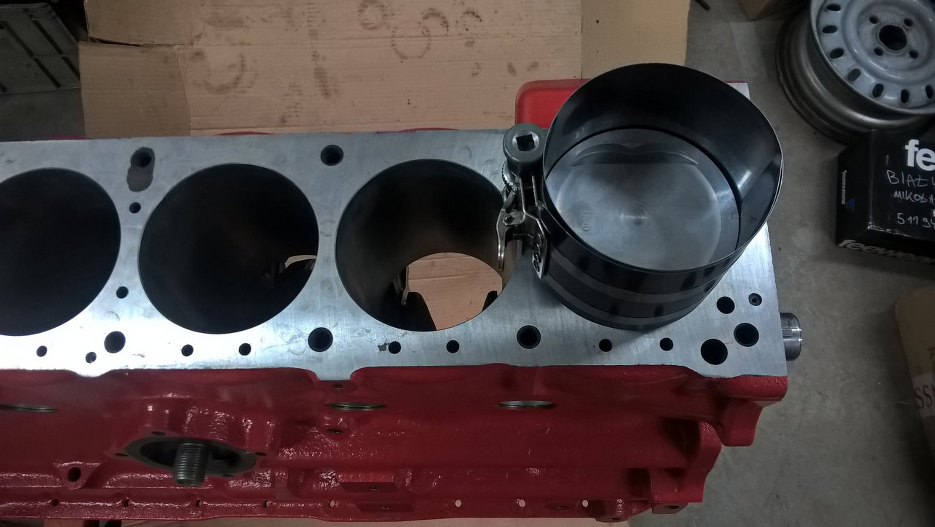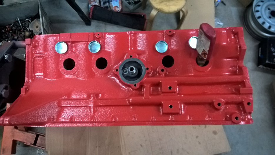 Potem pomalowałem blok na czerwono, bo czerwone są szybsze. Oczywiście podpuszczałem właściciela, że pomaluję na taki zielony metallic, na jaki był pomalowany silnik, z którego pozyskiwaliśmy części :). Przygotowaem też nowe broki do włożenia.