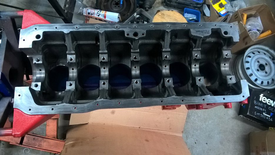 Tak, brakowało simmeringu tylnego wału. Za to mamy piękny, czysty blok. Można włożyć panewki w odpowiednie miejsca.