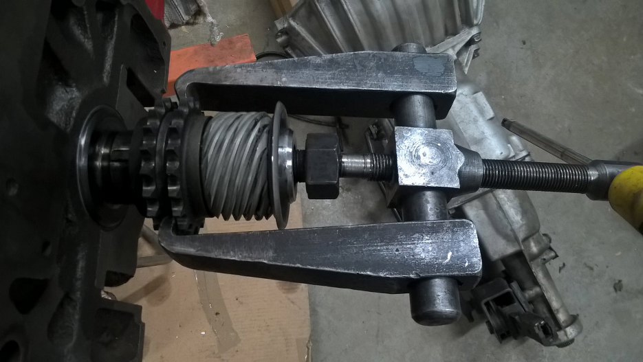 Mogłem to zrobić wcześniej, ale jakoś mi się nie chciało :). Ściągnąłem koła zębate z wału korbowego.