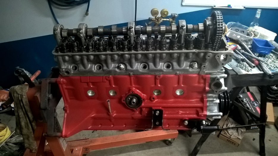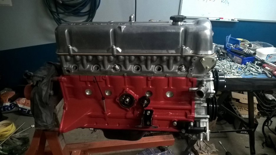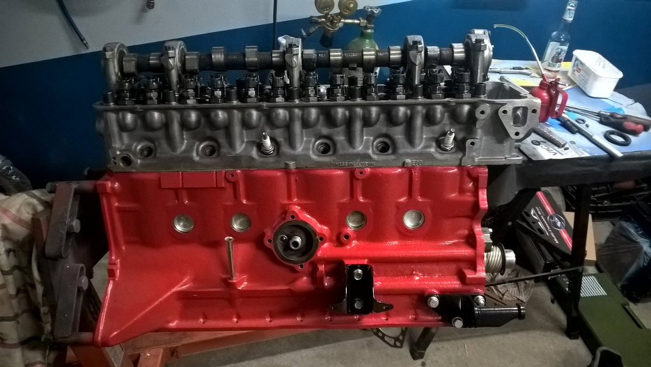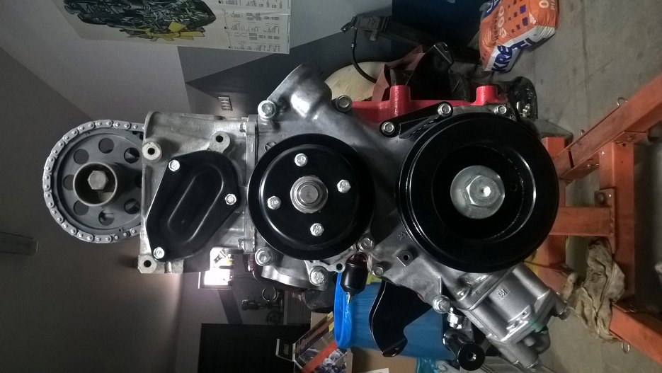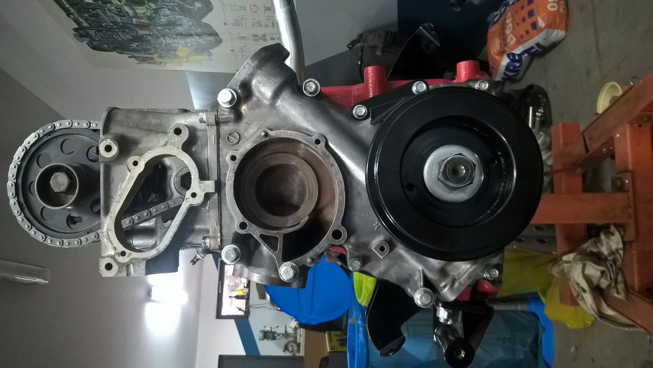 Z przodu zamontowałem zaślepkę głowicy, pompę wody i koło pasowe.