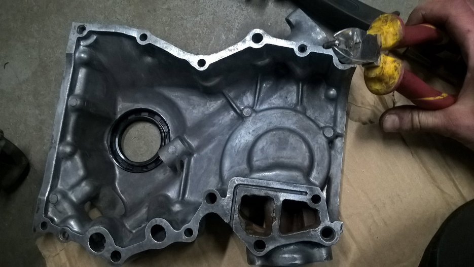 W umytej wcześniej pokrywie rozrządu wymieniłem simmering wału korbowego.