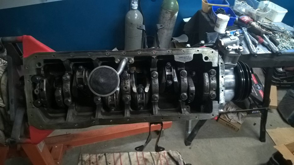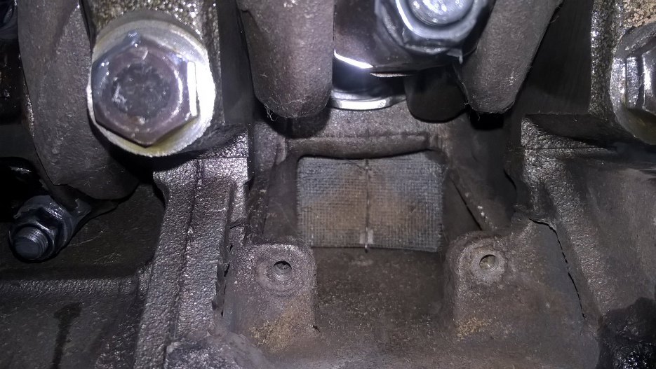 Zapomniałem też włożyć wcześniej siatkę stalową odmy w blok. Siatka nie problem, ale trzyma ją blaszka, którą jest potwornie ciężko włożyć jeśli w bloku jest już wał korbowy i tłoki...