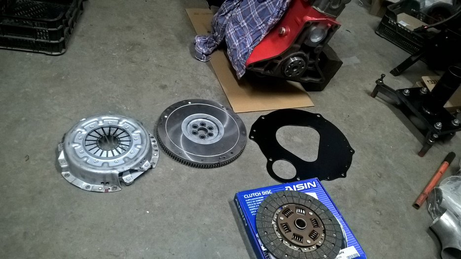 Zdjąłem silnik ze stojaka. Przygotowałem zestaw sprzęgła. Koło zamachowe było wyważane razem z wałem korbowym, podobnie docisk sprzęgła. Tarcza jest nowa, bo stara była mocno wyświechtana.