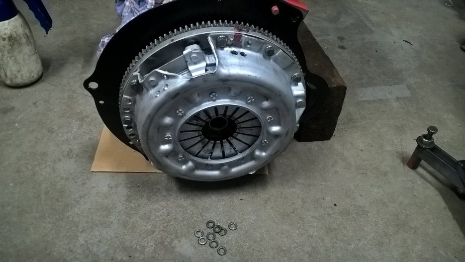 Założyłem blachę na blok, przykręciłem koło zamachowe.
