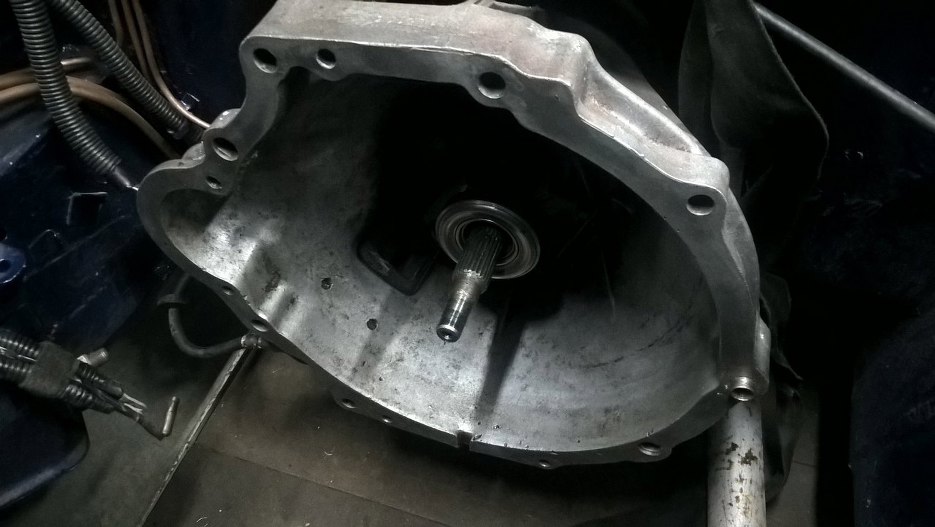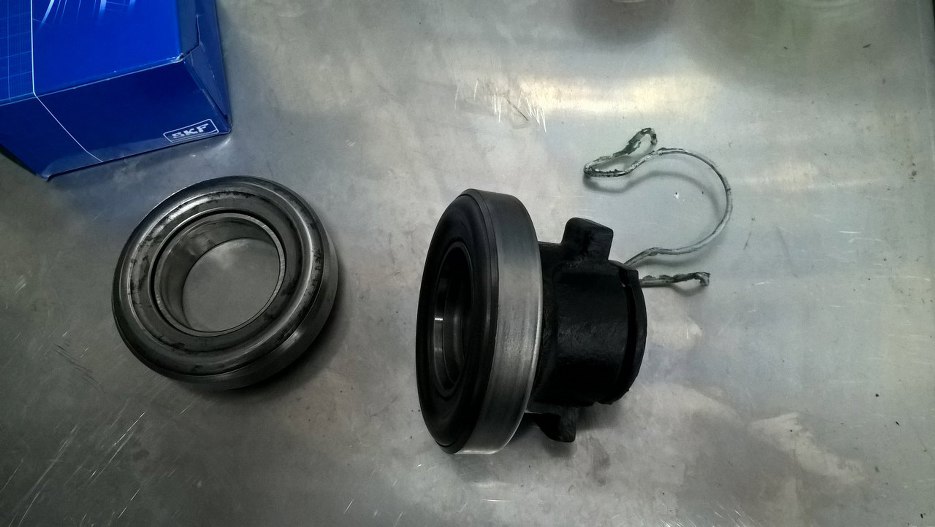 Już miałem wkładać silnik, ale wytarłem jeszcze obudowę sprzęgła z nadmiaru smaru, który tam latał. Odkryłem też, że łożysko sprzęgła szumi. Na szczęście, po grubym wertowaniu internetu, znalazłem numery właściwego łożyska i jego stada zamienników. Ze stada tylko jedno okazało się być dostępne, ale tyle wystarczyło. mamy nowe łożysko sprzęgła.