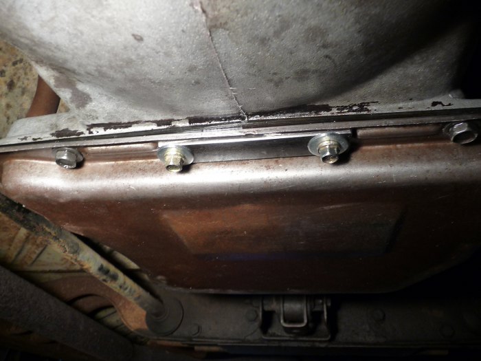 Sukces odniesiony przy wymianie uszczelki miski olejowej skrzyni biegów jeszcze szumiał w głowie, gdy się okazało, że nadal kapie... Co prawda nie w takich ilościach, ale zawsze. Przeszedłem do planu B. Po zbadaniu całej miski dookoła zauważyłem, że jest zgięta w przedniej części tak, że ma krzywą płaszczyznę przylegania. Trochę pomyślałem (bo tak łatwo to się tego nie da wyprostować, bo to tłoczony profil, zresztą prostowałem już tą miskę) i wymyśliłem profil wzmacniający. Zacząłem od płaskownika.