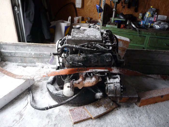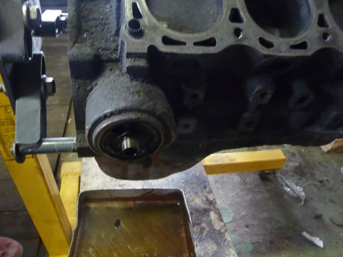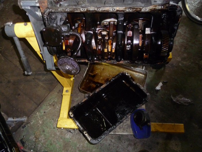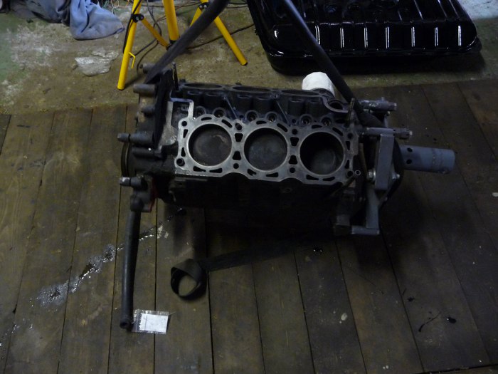 Podwiesiłem silnik na wyciągarce, potem zlałem olej.