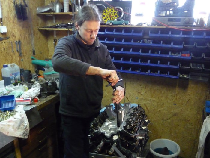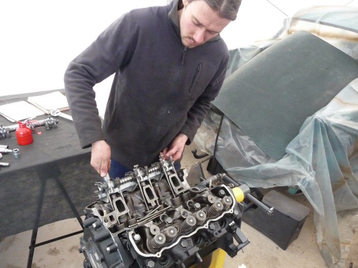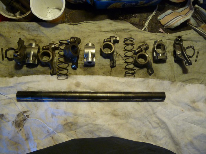Miał do dyspozycji z 20 kompletów, niestety udało się z tego wybrać zaledwie tyle części, żeby ledwo starczyło na 2 dobre. Głównym problemem był brak smarowania dźwigienek (skutek wyrobionych panewek wałka rozrządu, przez które olej dociera na górę silnika).