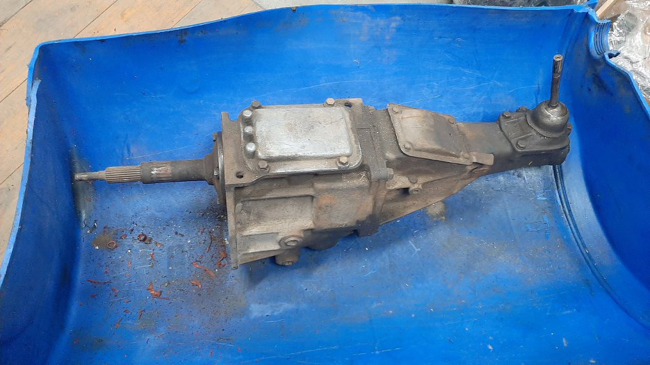 Minął pewien czas, Granada Dreda już dawno poskładana... Ale Dred przywiózł do mnie zapasową skrzynię biegów, żebym ją przygotował. To jest tak zwana "wzmacniana czwórka", czyli w/g oznaczeń Forda Typ E. U brytoli zwana Typ 5. To pewnie dla zmylenia przeciwnika. Ogólnie jest to skrzynia stosowana tylko w 2.8 i 3.0, rzeczywiście jest mocniejsza w konstrukcji od innych skrzyń Forda. Standardowa przypadłość tej skrzyni to wypadająca dwójka i złamany czujnik wstecznego. Dwie przypadłości! Wypadająca dwójka i złamany czujnik. Czujnik jest złamany, bo jest wkręcany od spodu skrzyni. A każda próba przeniesienia tej skrzyni kończy się tak samo: chwytasz skrzynię jak każdą inną, po czym z soczystym "o w mordę" upuszczasz ją na ziemię, bo jest ciężka jak cholera. A nie wygląda.