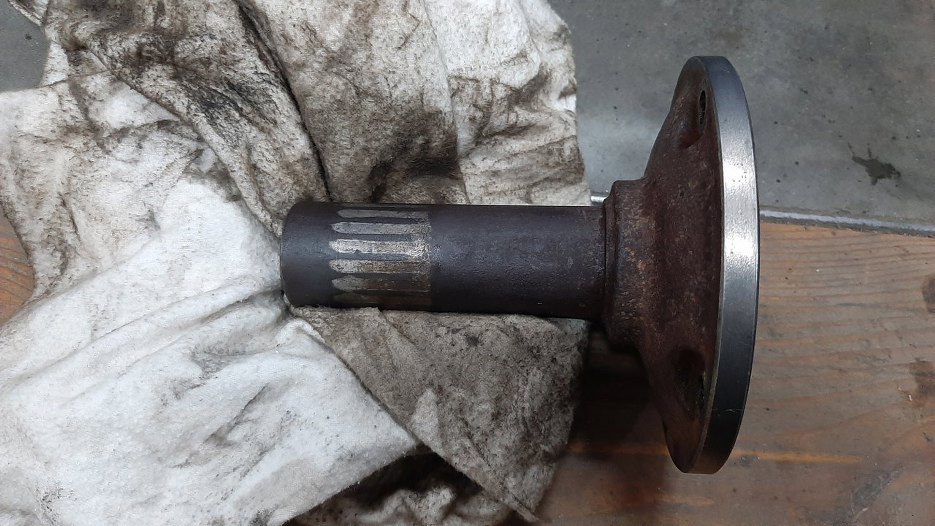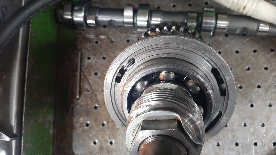 O, tu jest ta obudowa przedniego łożyska. Po nim się przesuwa łożysko sprzęgła i niestety widać zużycie materiału. Dred obiecał dostarczenie drugiego tego elementu. Może będzie lepszy. Jeśli nie, to będę napawał i toczył ten.