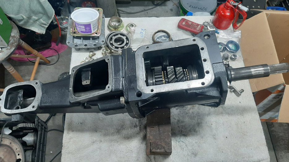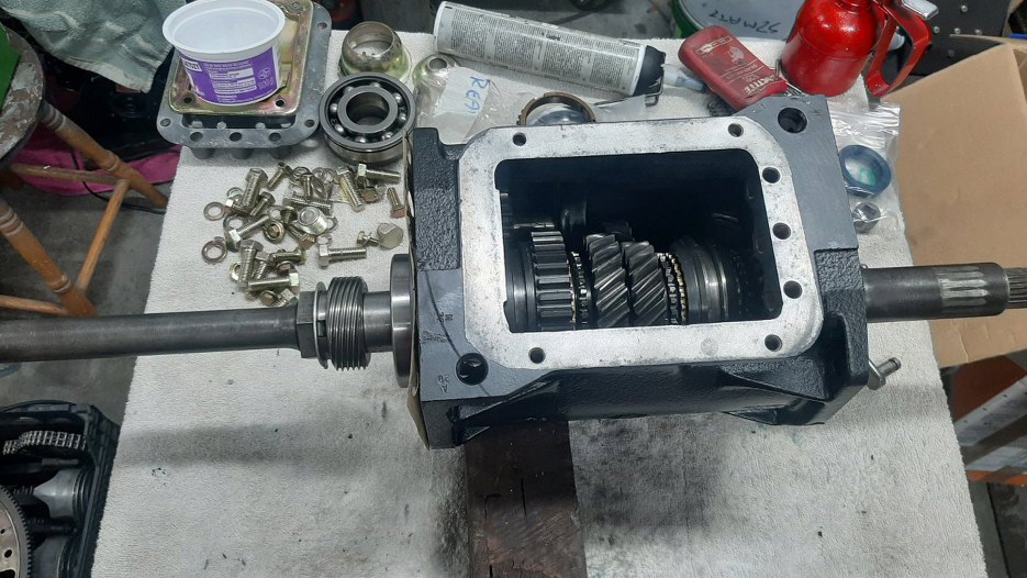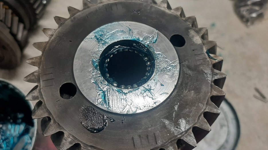 Do obudowy skrzyni włożyłem magnes na dno, tak jak fabrycznie było. Potem przykleiłem na smar panewki oporowe wałka pośredniego. Koło zębate biegu wstecznego nawet nie było wyjmowane - nie było takiej potrzeby.