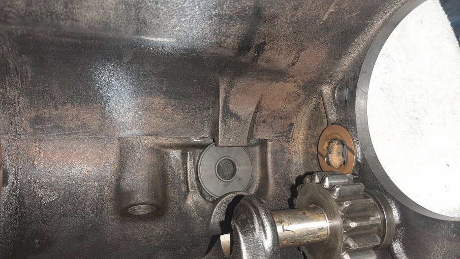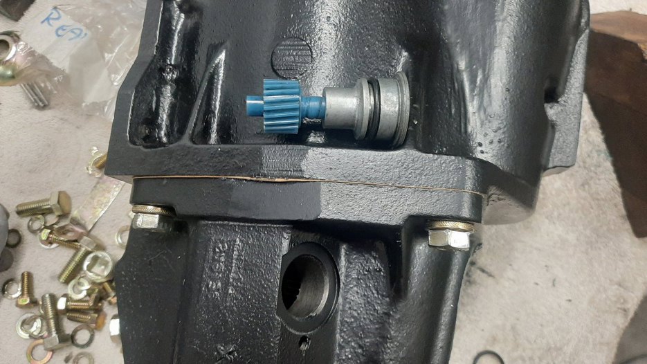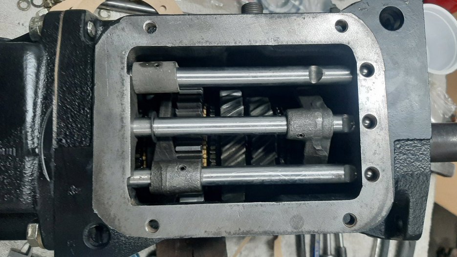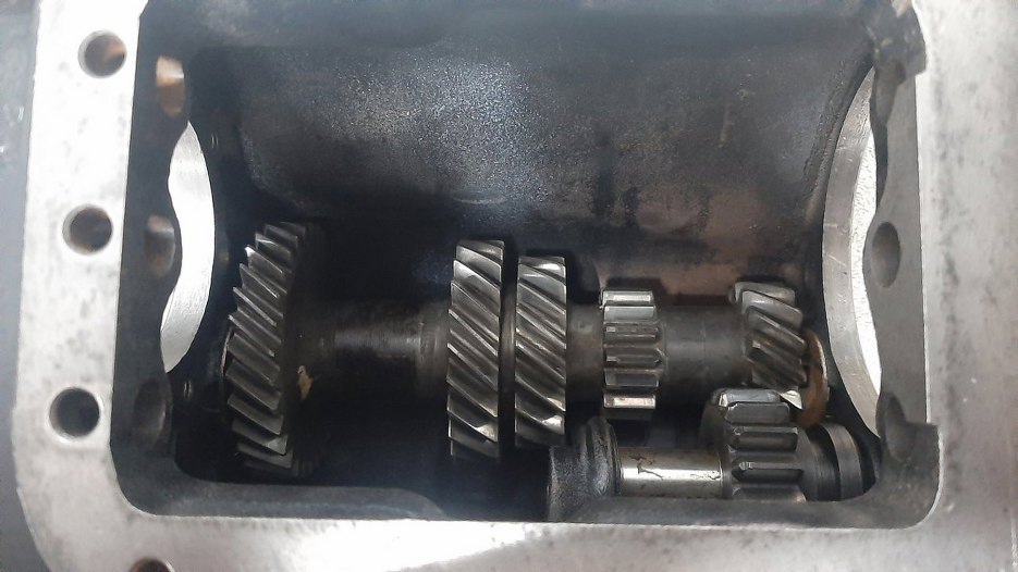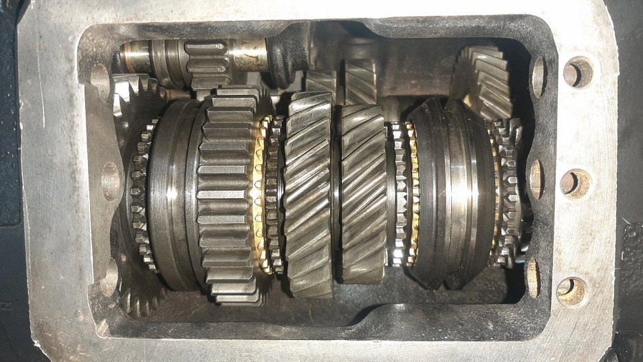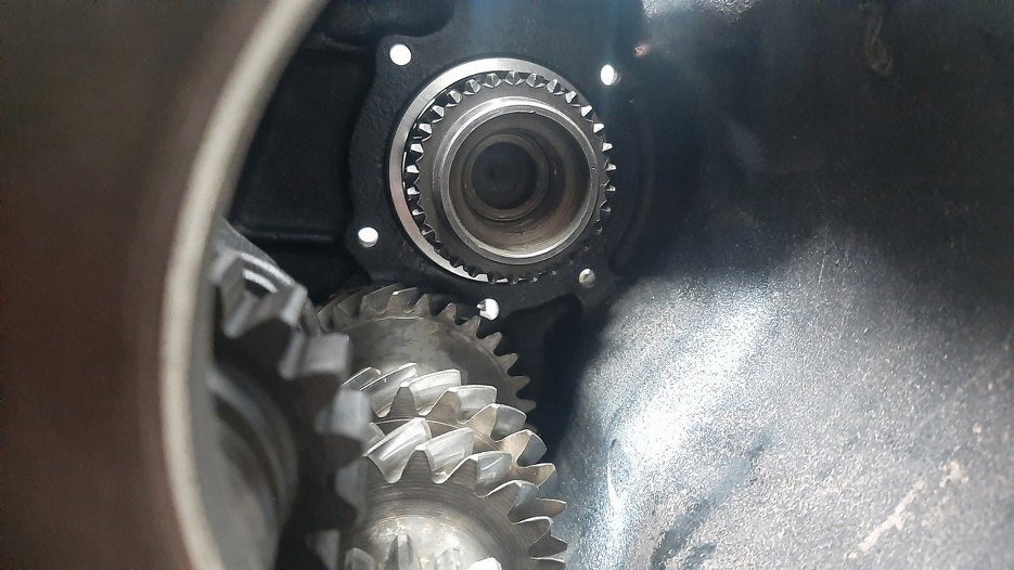 Tak to wygląda od strony wnętrza skrzyni. Widać odstęp między kołami zębatymi. Bez tego nie dałoby się go włożyć.