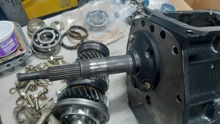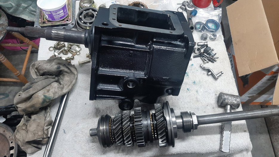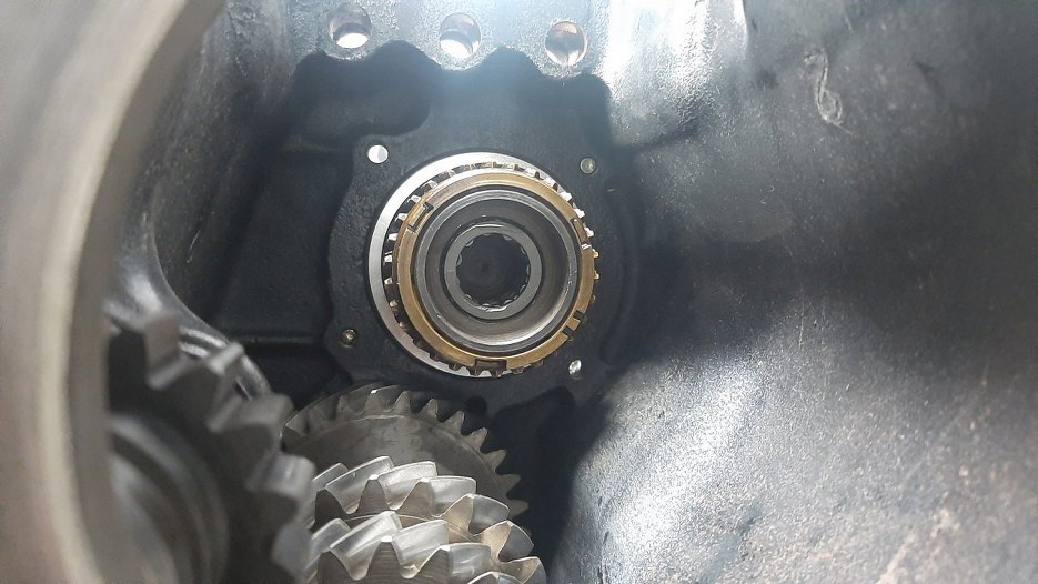 Tu widać te łożysko już na miejscu. Założyłem też synchronizator czartego biegu.
