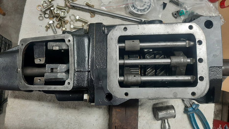 I wszystkie pręty na miejscu. Od dołu: 1 i 2 biegu, środkowy - 3 i 4 bieg, górny - wsteczny.