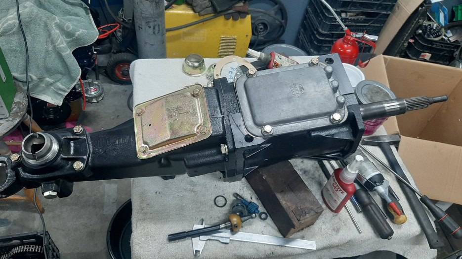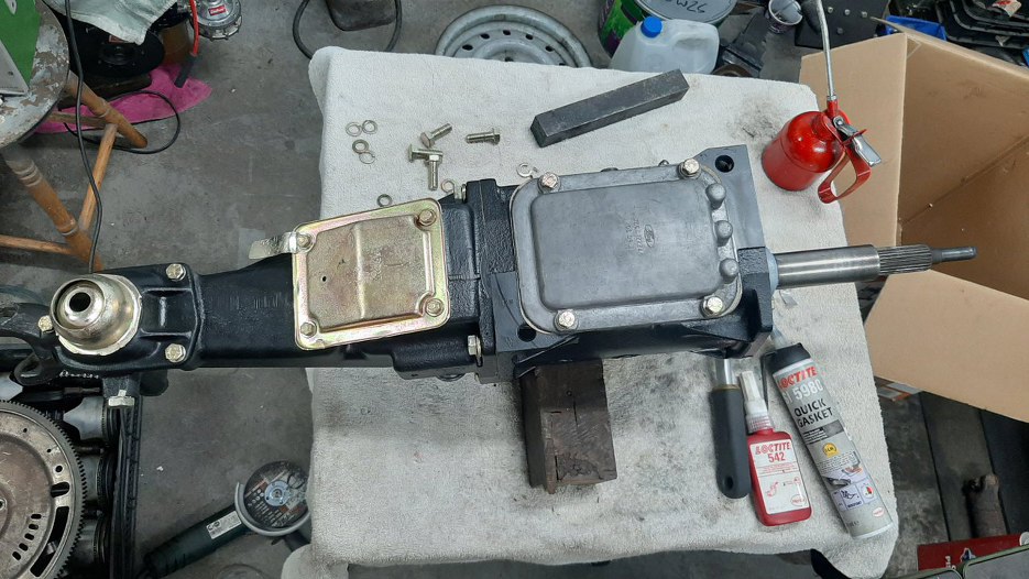 Przykręciłem też nakrętkę trzymającą dxwignię zmiany biegów. Dźwigni nie ma, Dred po założeniu skrzyni na auto przykręci swoją obecnie używaną.