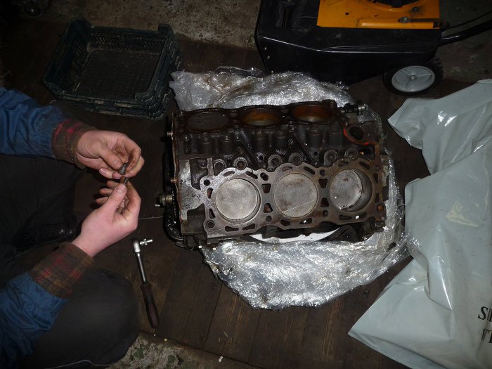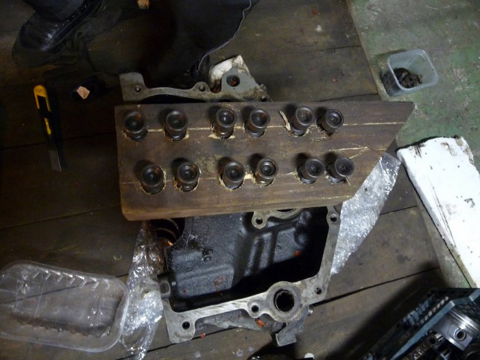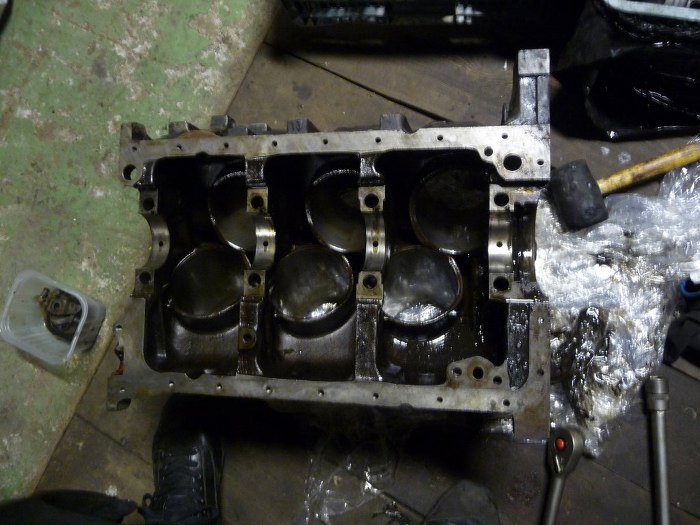 Silnik był poskładany przez kogoś, kto zrobił szlif wału i poskładał go z powrotem. Nigdy nie jeździł po remoncie - zostały założone na niego głowice od 2.9 i nikt nie dał rady go uruchomić :) Co nie powinno dziwić, bo 2.9 ma inaczej zawory ustawione na dwóch cylindrach... Zostawię to bez komentarza, jedynie wspomnę, że żeśmy się w garażu nieźle z tego obśmiali.