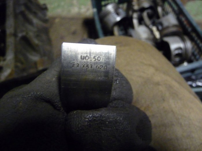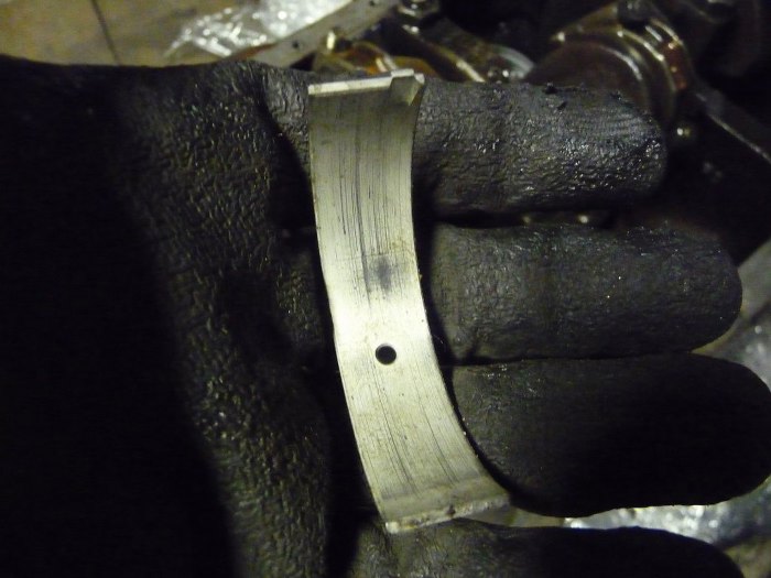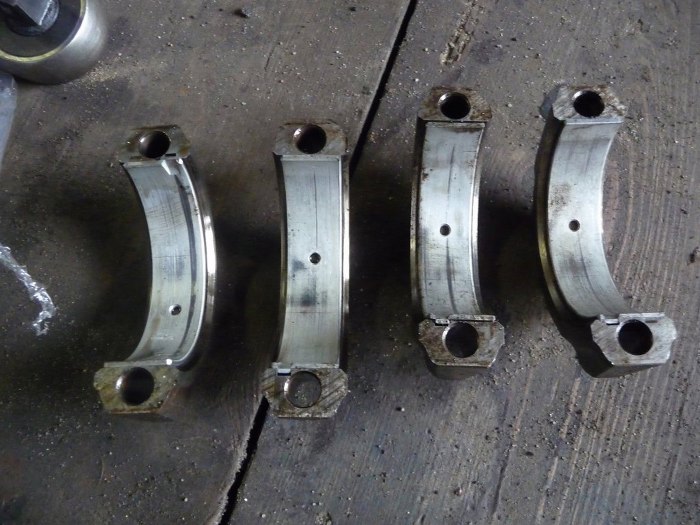 Panewki korbowe ledwo użyte, chociaż widać podłużne rysy od syfu w oleju. To jest efekt nie domycia kanałów olejowych.