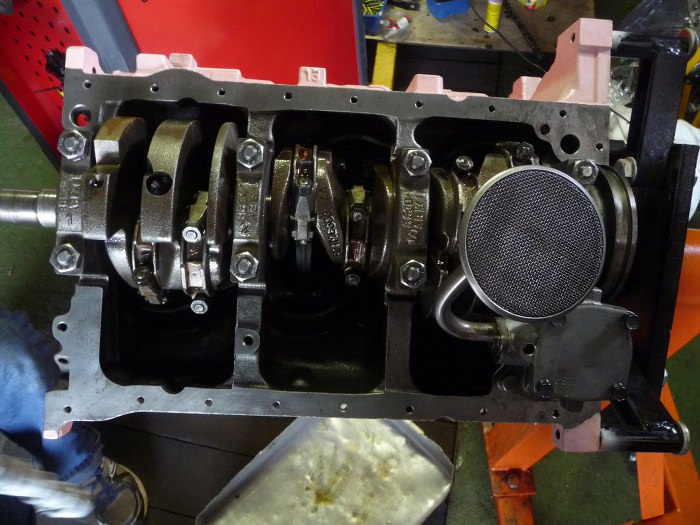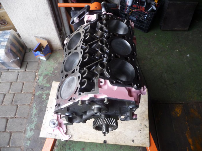 Tłoki włożone. Przykręciliśmy pompę oleju - nową.