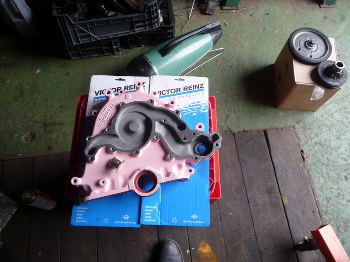 Następnie blacha do bloku i koło zębate wałka rozrządu.