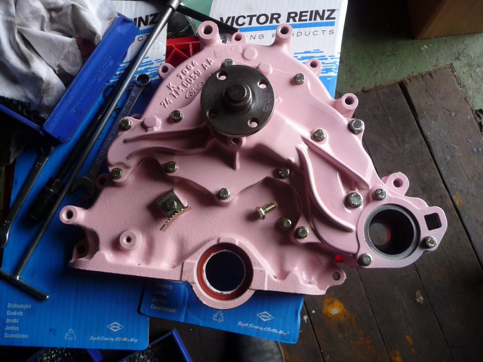 Nieco inaczej niż zwykle - najpierw przykręciliśmy pompę wody do pokrywy rozrządu.