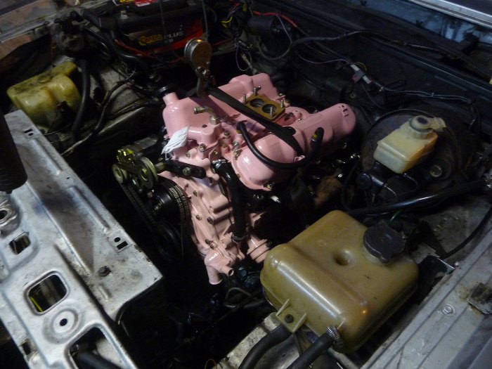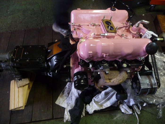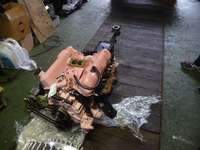 Po wyciągnięciu starego silnika Dred przełożył koło zamachowe i sprzęgło do tego. Sprzęgło było dość niedawno robione i było założone już większe, właściwe dla 2.8, dlatego można było je przełożyć. Przykręcona zostałą też skrzynia biegów.