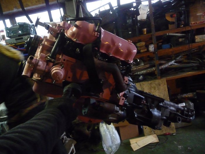 Silnik ze skrzynią podnieśliśmy wyciągarką i włożyliśmy jako zestaw.