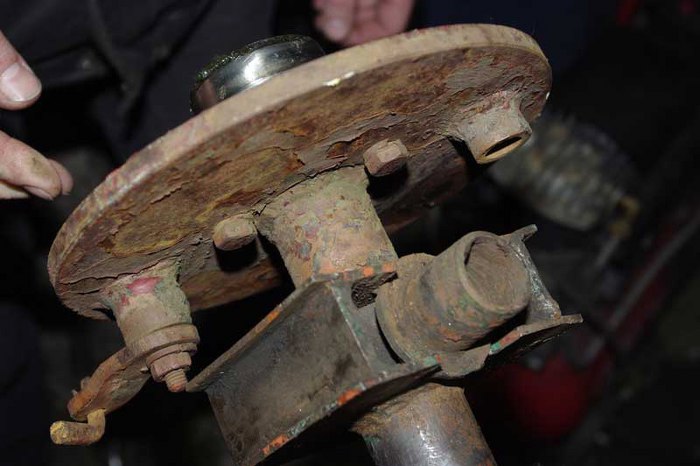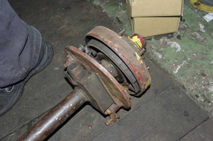Tu widać mechanizm uruchamiający hamulec, wystający z tarczy kotwicznej. Widać też , że jest od dołu osi.
