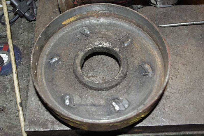 Tu kolejny pomysł "pana Henia". Śruby się poluzowały? No to trzeba się upewnić, żeby się nie luzowały. Masakra. Nie będziemy z tym walczyć, jedynie spawy zostaną odrobinę ścięte na tokarce, żeby płaszczyzna wewnętrzna bębna bya płaska.