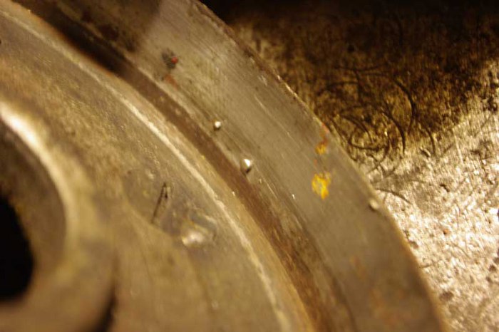 A czy przypadkiem nie od tego okładzina szczęki hamulcowej była wydrapana? tak, od tego. Porządny mechanik to robił :) Też trzeba się tego pozbyć. Ale to już chyba nie na tokarce, żeby bębna nie popsuć, tylko się dremelem oszlifuje.