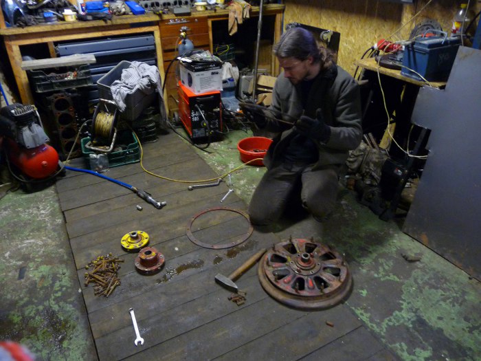 Musieliśmy je rozebrać aby wyprostować jego poszczególne elementy, kupić nowe śruby (większość ma pozrywane gwinty) i odnowić tulejki dystansujące poszczególne "plastry" koła.