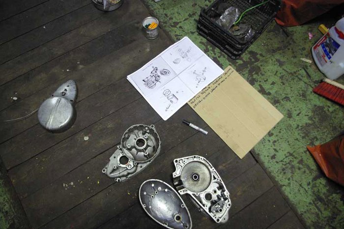 - zinwentaryzować wszystkie części silnika i układu przeniesienia napędu aby zobaczyć co jest do wymiany i czego brakuje.